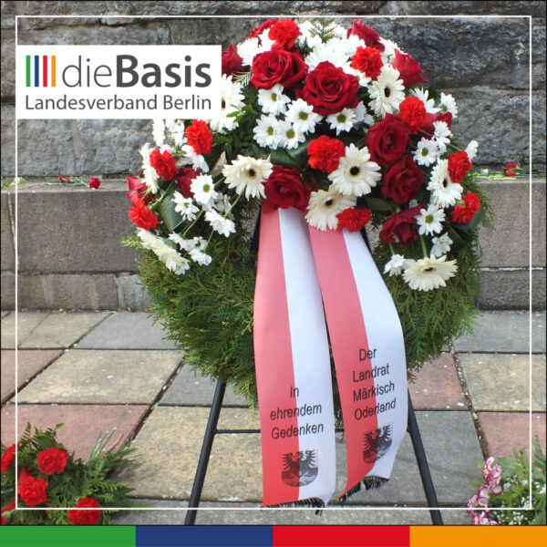 Darum ist es so wichtig, eine Erinnerungskultur zu pflegen und sich immer wieder bewusst zu machen, was damals geschehen ist, damit es heut nicht wieder geschieht. Und darum nahm der Landesvorstand der Basisdemokratischen Partei Deutschland neben Vertretern des Bündnisses Sahra Wagenknecht und der Alternative für Deutschland an der Gedenkveranstaltung der russischen Botschaft auf den Seelower Höhen teil und legte ein Blumengebinde nieder.